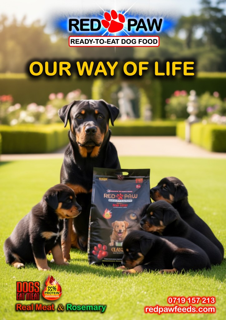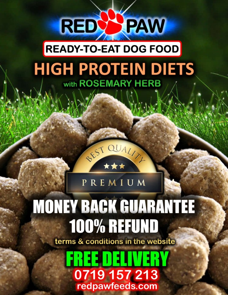- High Protein Diet – Red-Paw contains a Minimum of 35% Crude Protein.